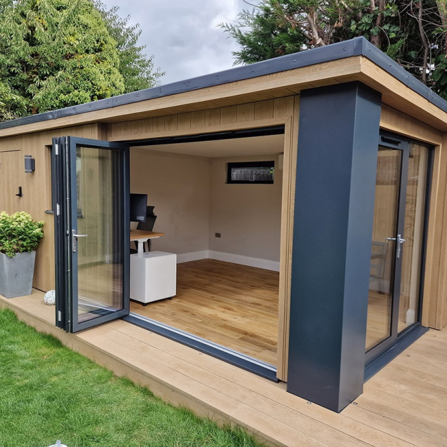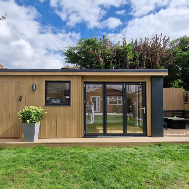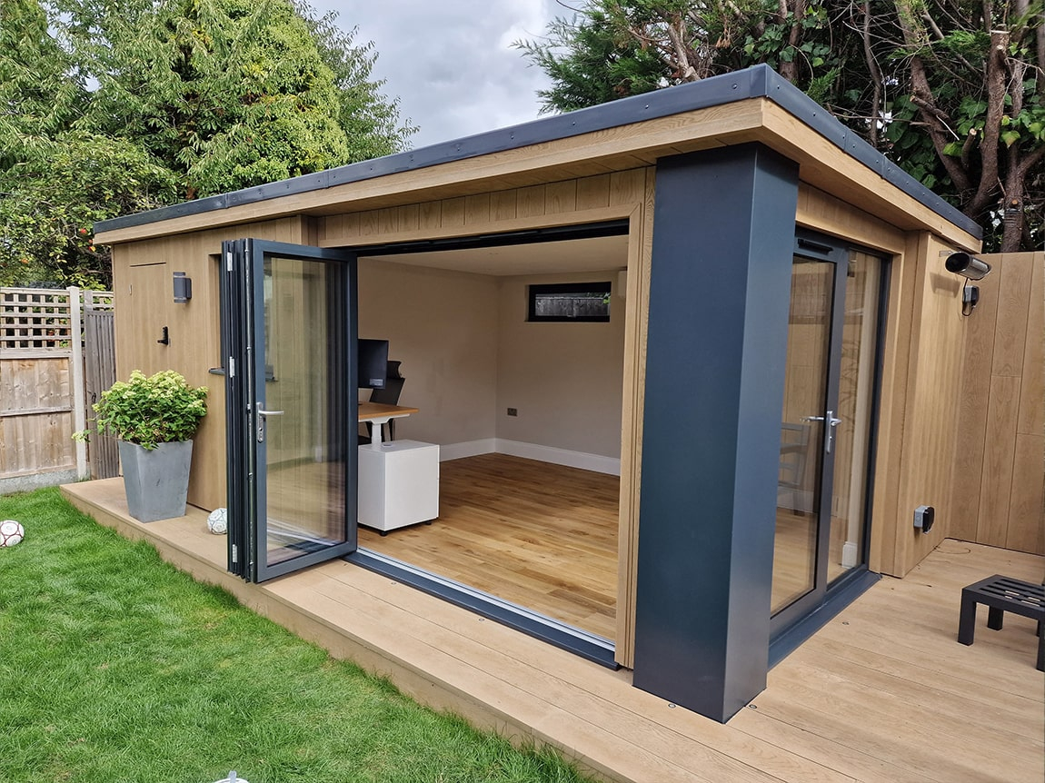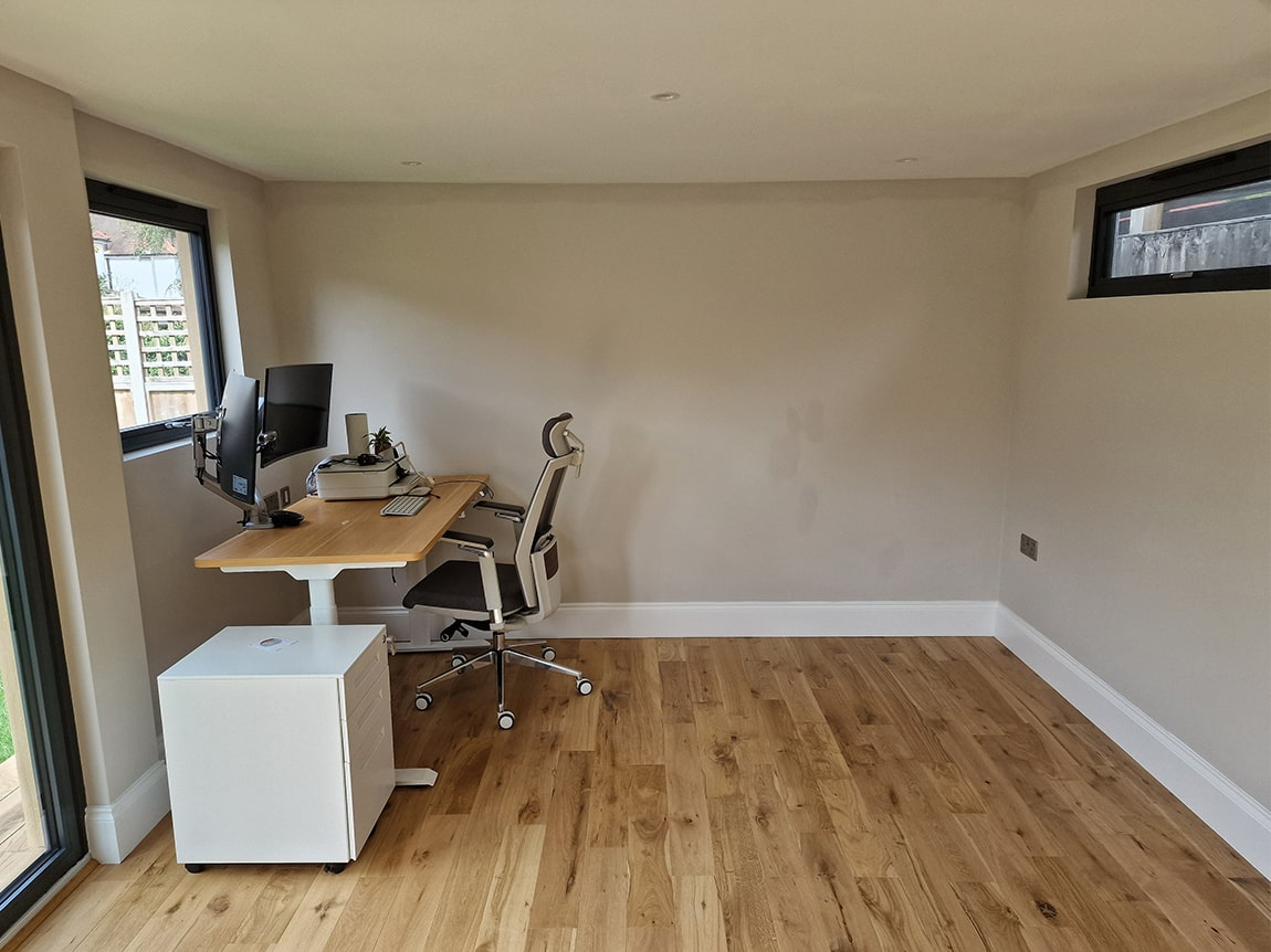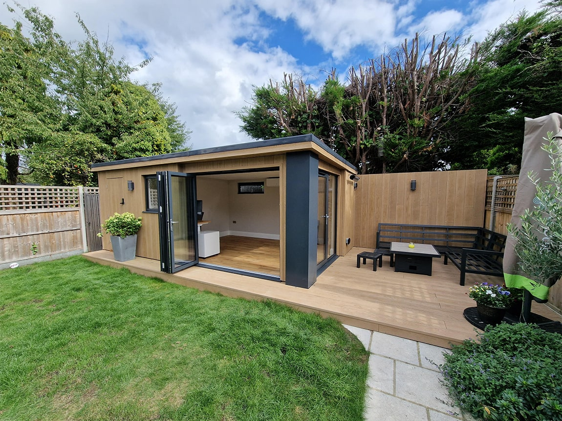 We were tasked with replacing a shed with some storage, an office space and an outdoor seating area. Utilising dead space at the end of the garden.